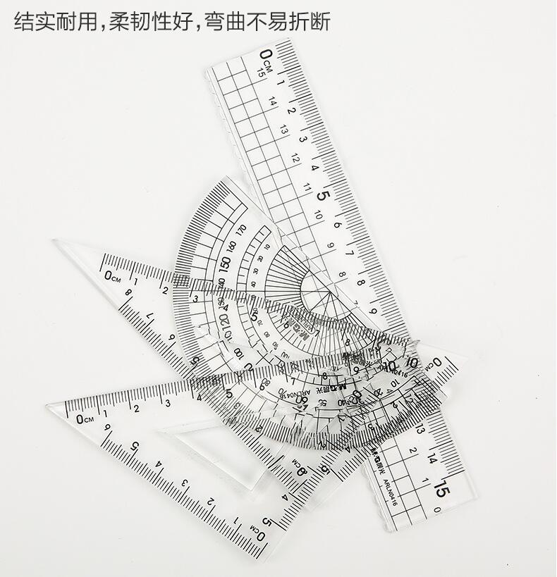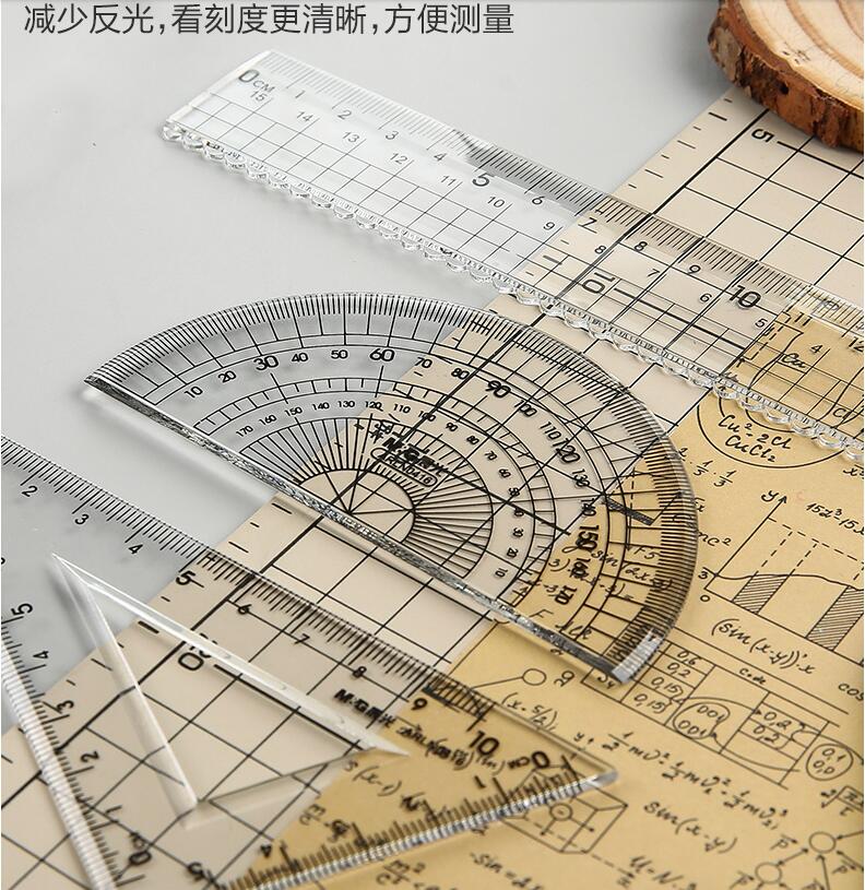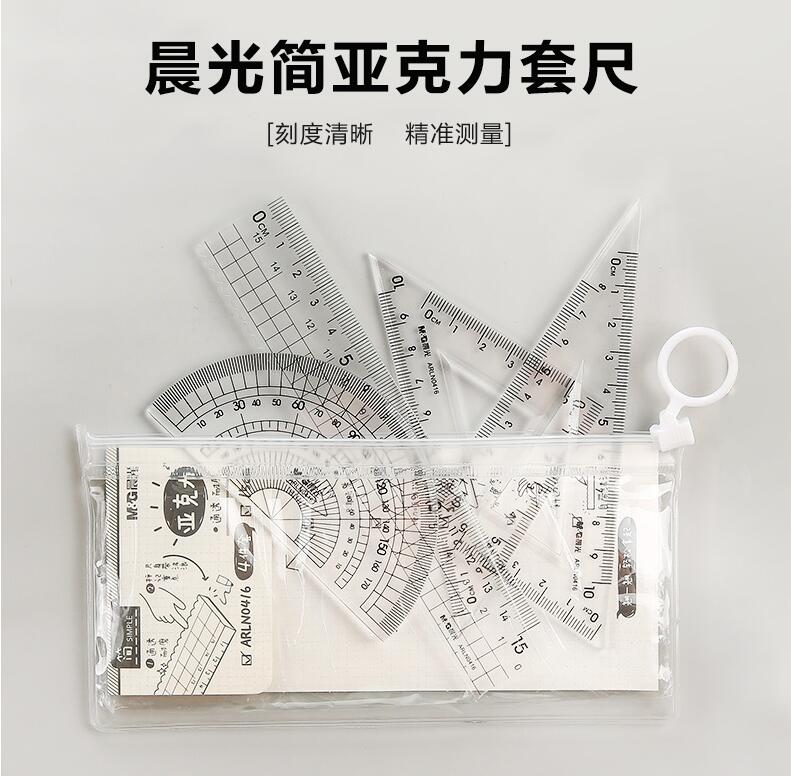 晨光文具 透明套尺 亞克力四件套15cm直尺三角板量角器學(xué)生用考試?yán)L畫(huà)專用制圖測(cè)量隨身便攜多功能幾何工具